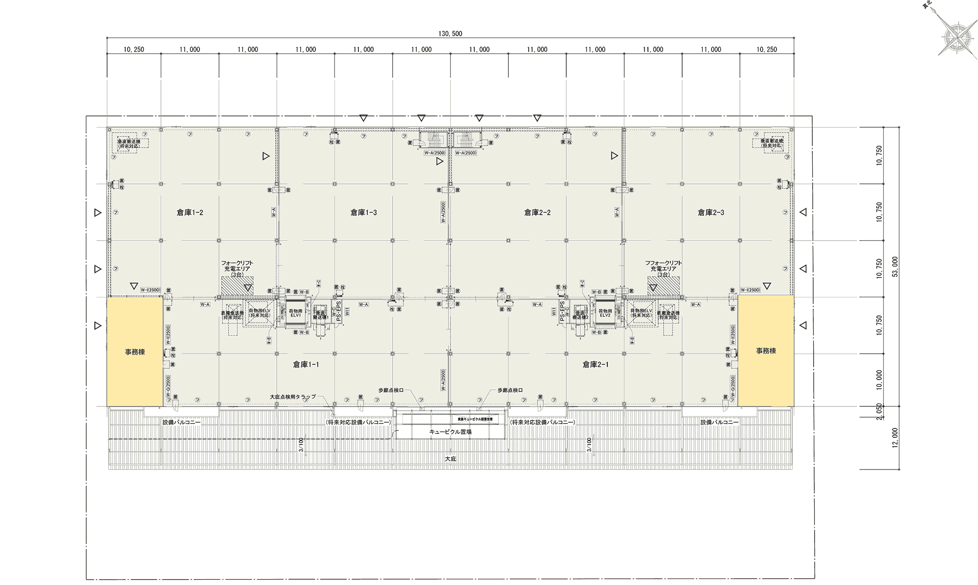 | 延床面積 | 6,276.72坪 | 荷物用EV | 2基(3.5t)両面 |